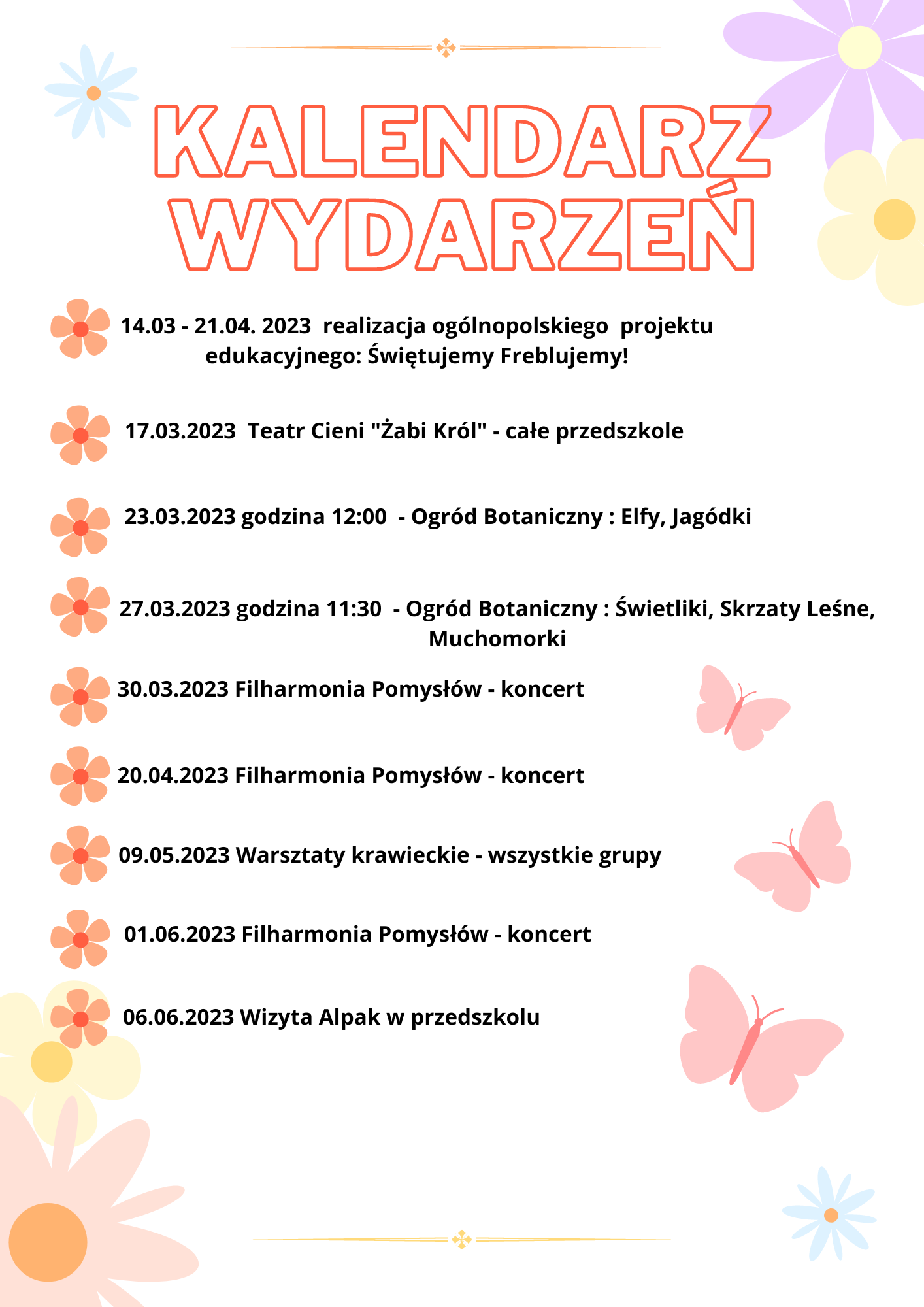 Zapraszamy serdecznie dzieci nowoprzyjęte na zajęcia adaptacyjne, które odbędą się w dniach: 30 sierpnia oraz 31 sierpnia 2023 r. (środa, czwartek) w godzinach od 9.00 – 12.00 w salach „Krasnoludki” / „Muchomorki”.